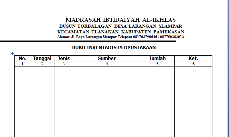 Contoh Format Kelengkapan Administrasi Perpustakaan Sekolah